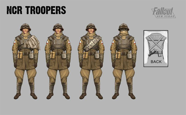 Ncr troopers are the main foot soldiers for the new california republic army in the mojave wasteland during 2281.